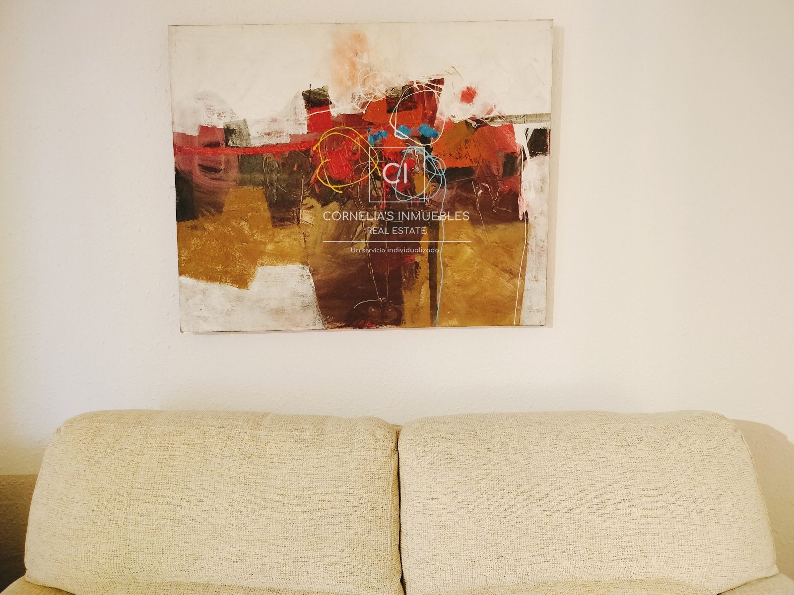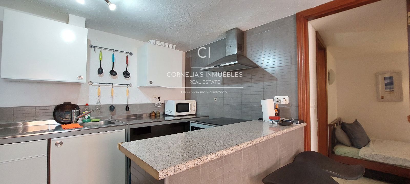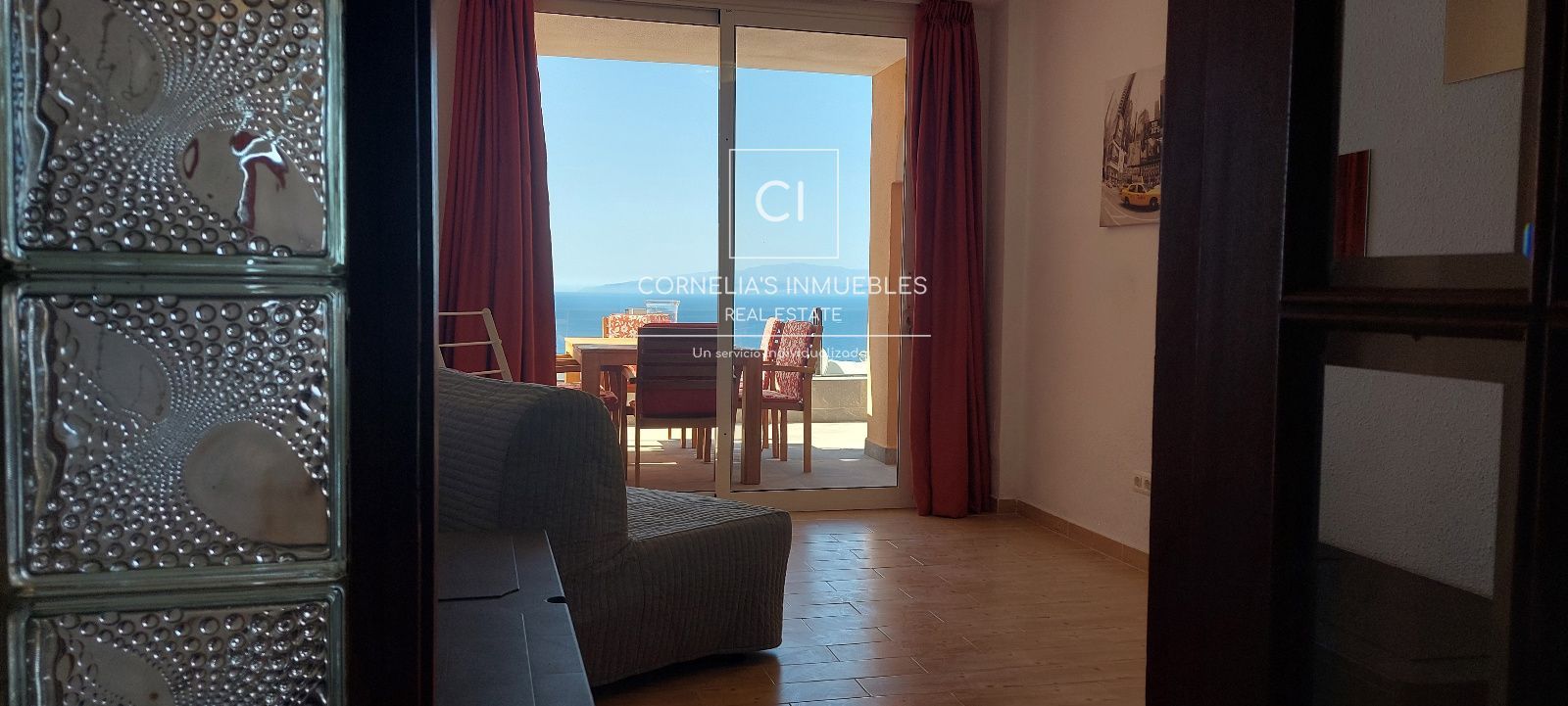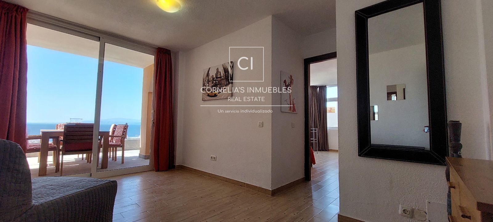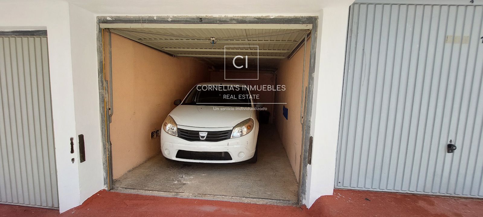 Eine geschlossene Garage befindet sich direkt vor dem Eingang. Ruhige Wohngegend mit herrlichem Meerblick. Gemeinschaft ohne funktionierenden Pool.