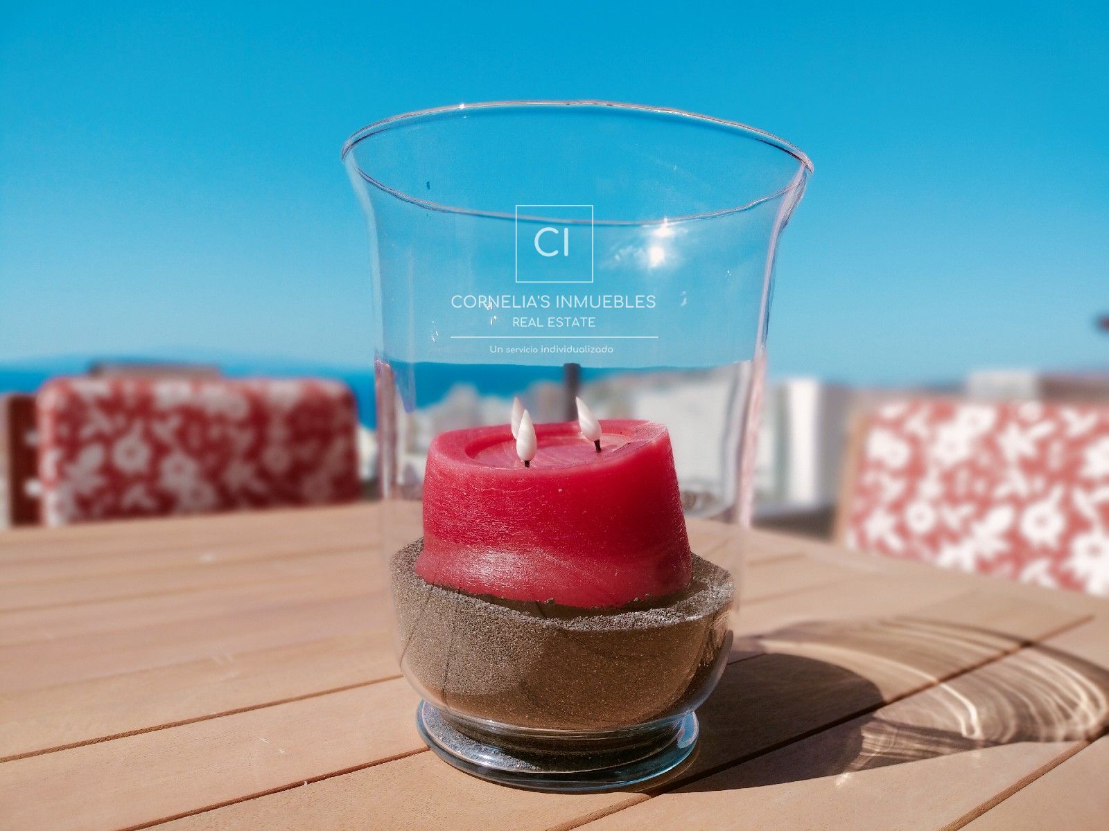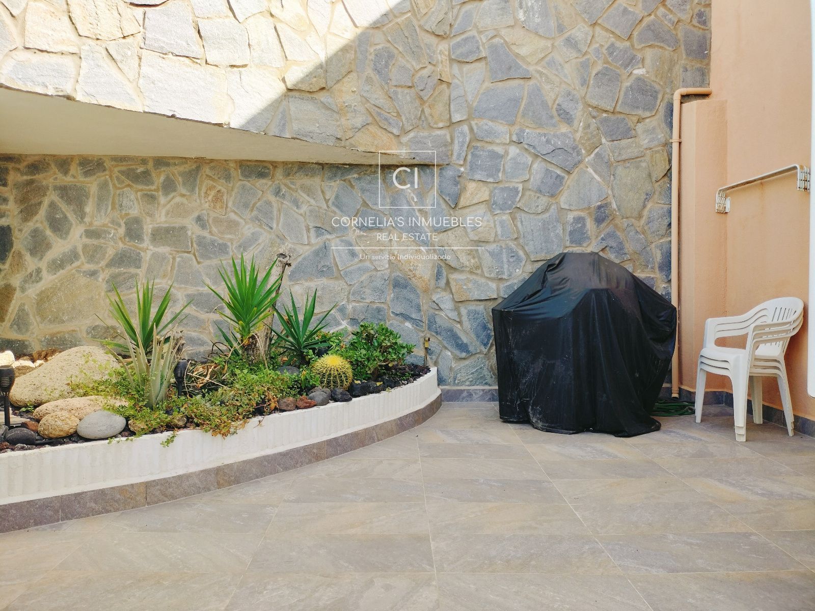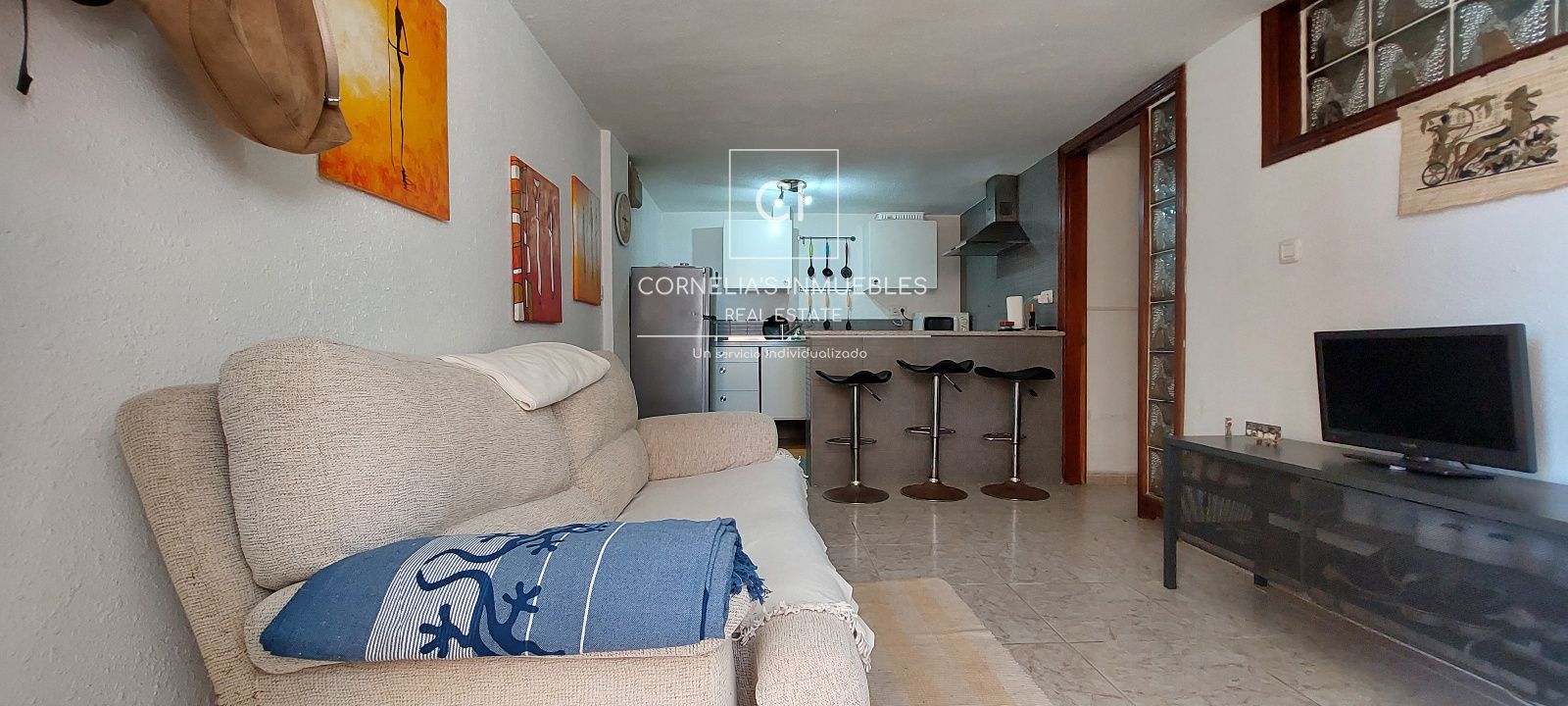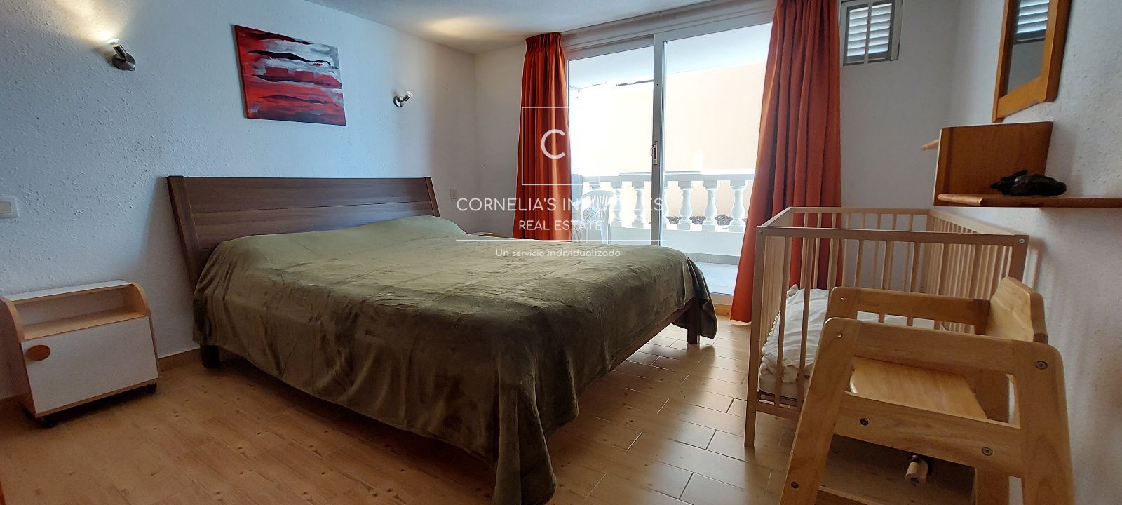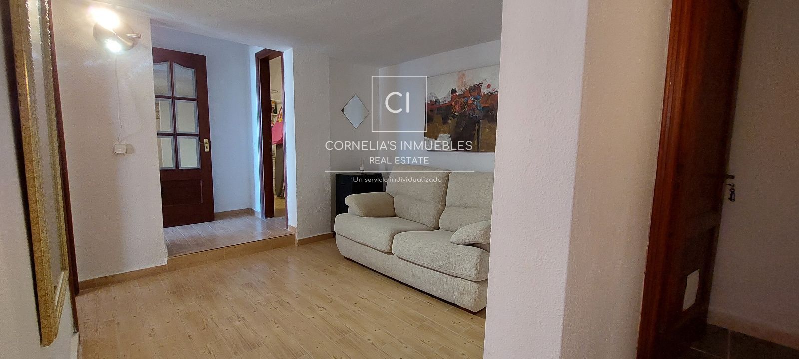 Eine geschlossene Garage befindet sich direkt vor dem Eingang. Ruhige Wohngegend mit herrlichem Meerblick. Gemeinschaft ohne funktionierenden Pool.