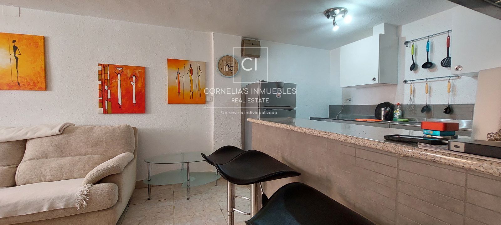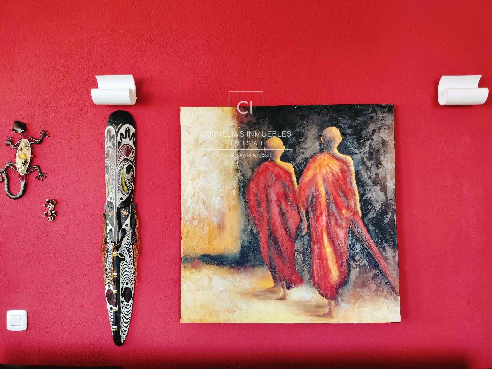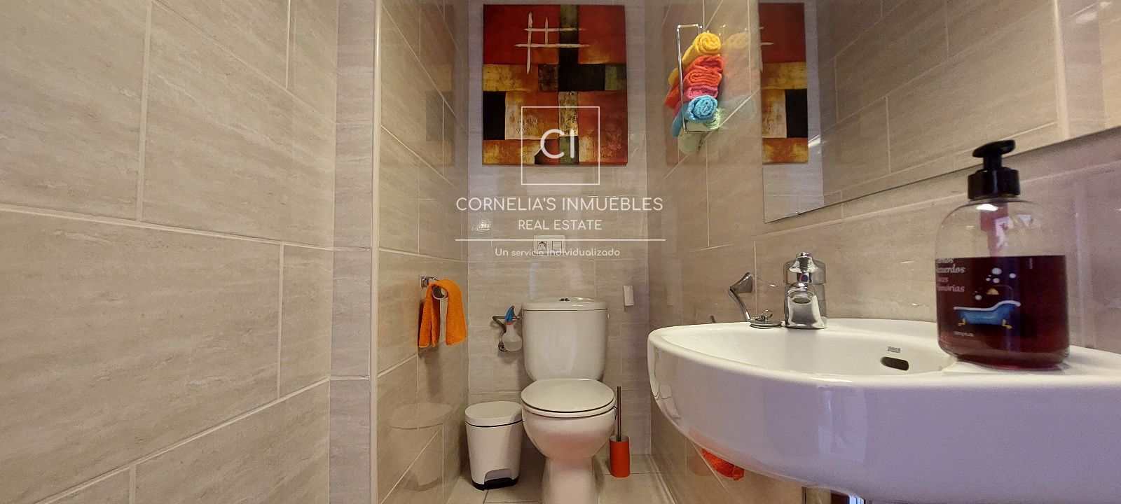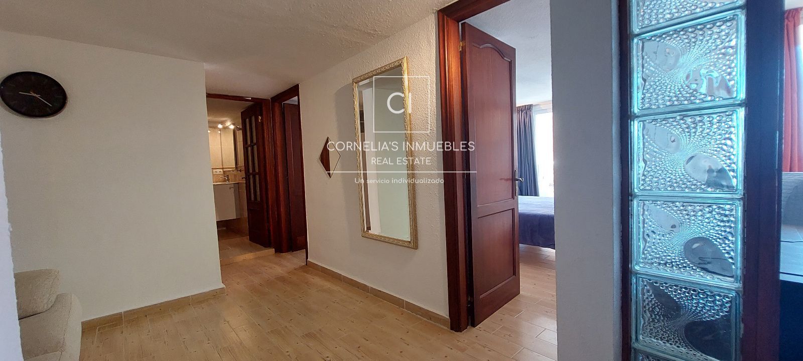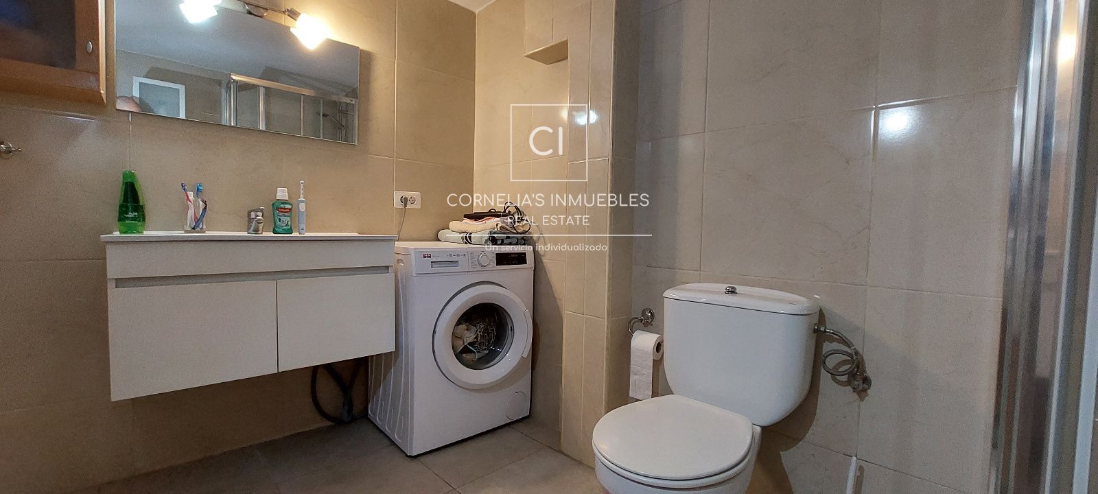 Eine geschlossene Garage befindet sich direkt vor dem Eingang. Ruhige Wohngegend mit herrlichem Meerblick. Gemeinschaft ohne funktionierenden Pool.