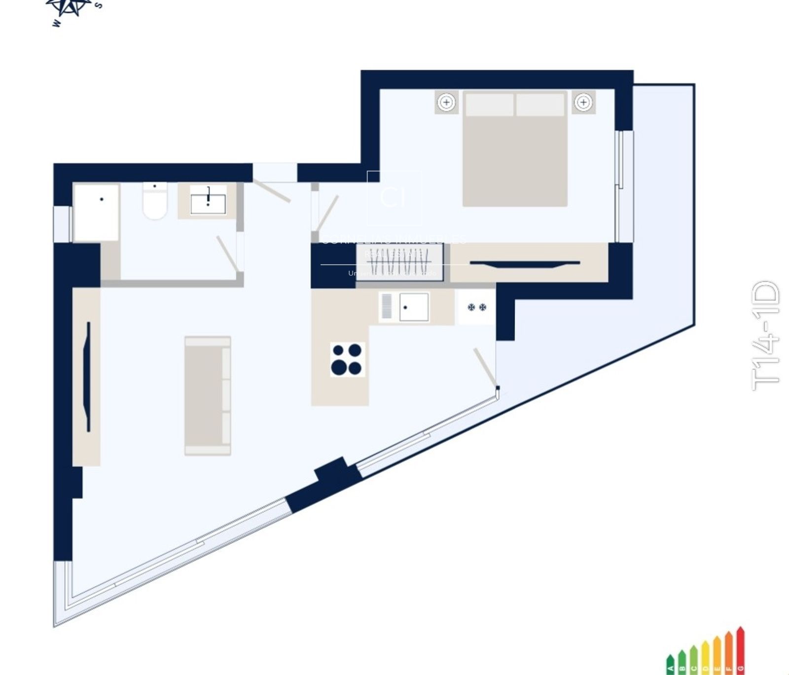 Apartamento moderno de 1 dormitorio, ideal para quienes buscan comodidad y funcionalidad. Cuenta con una superficie construido de 53,54 m² y 42,41m2 útiles, distribuidos en 1 dormitorio, 1 baño con ducha, cocina abierta, salón-comedor y terraza privada de 11,13m2 . Perfectos como primera vivienda, segunda residencia o inversión con alta demanda en alquiler. Cada vivienda incluye plaza de garaje y trastero en el precio.