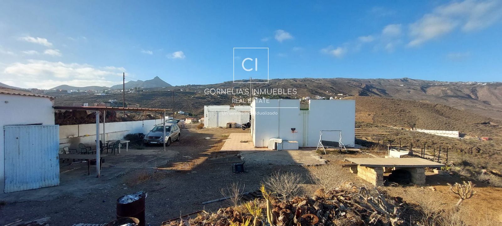 Nos complacemos de ofrecer una casa acogedor con 3 habitaciones en venta, en el barrio de Las Manchas, término municipal de Santiago del Teide. La superficie total es de 297,11 m2, hay una VIVIENDA de una sola planta, superficie construida total 150,56 m2, distribuidos en entrada, 3 dormitorios, comedor, salón-estar, cocina, 3 baños, 1 garaje y almacenes y piscina.