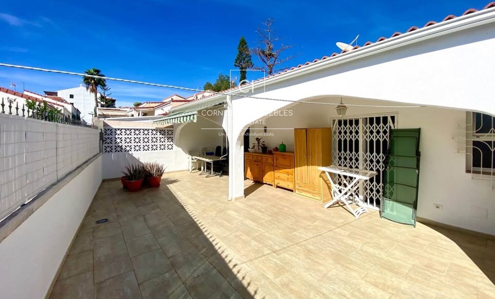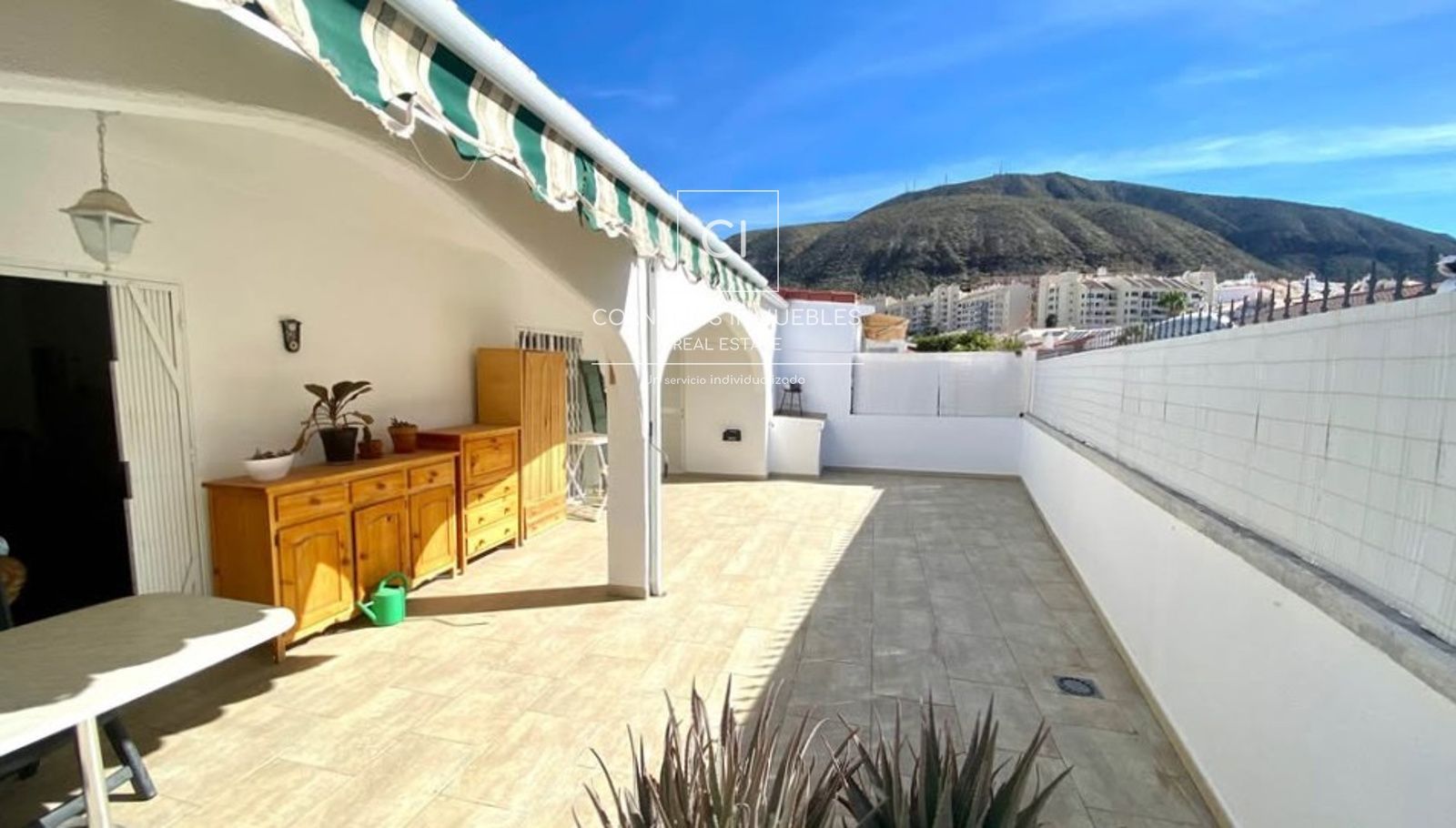 L'espace de vie se compose d'un séjour/salle à manger ouvert, spacieux et lumineux, intégrant une cuisine entièrement équipée, créant ainsi un espace pratique et convivial au quotidien. L'un des atouts majeurs de la propriété est sa magnifique terrasse de 58 m², idéale pour profiter du climat exceptionnel de Tenerife, organiser des réceptions en plein air ou se détendre en toute intimité. À l'arrière de la terrasse se trouve une buanderie fermée, très pratique comme espace de rangement.